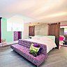 Dans un « joyeux bordel », la décoration éclectique offre un patchwork d’influences, de la salle d’accueil aux chambres, en passant par la salle de conférence, bien différente d’une salle de réunion conventionnelle. Si l’on s’ennuie, on peut toujours rêver en regardant les différents lés de papier peint qui tapissent les murs choisis pour attirer l’attention. OVNI dans le monde de l’hôtellerie comme Rimbaud dans la littérature, cet espace raconte un parcours atypique, comme celui du poète enterré à 200 mètres de là. Le fil conducteur, a été l’originalité, pour être résolument moderne, comme Rimbaud l’a été en son temps. Réussite totale pour cet hôtel qui offre trois catégories de chambres : « Rime », entrée de gamme ; « Strophe », milieu de gamme et « Poème », avec une surface plus grande et une salle de bains incluant douche et bain.
