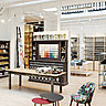 Dans ce vaste espace décloisonné, on peut choisir une petite table dans la collection de Karsten Lauritsen, en exclusivité pour la France, composée de plateaux modulables en plus de 100 couleurs, 5 pieds différents et 5 tailles…