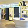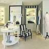 Le nouveau concept fait des boutiques Descamps un écrin luxueux et raffiné où l’impression de rentrer « chez soi »est omniprésente. La boutique est semblable à un grand appartement haussmannien, intemporel et contemporain. Parquet point de Hongrie, mobilier aux découpes sobres, grandes tentures rayées, lumière indirecte, subtil parfum de fleur d’oranger, aucun détail n’est laissé au hasard. Comme à la maison, on y trouve des bergères, d’élégants luminaires aux abat-jour plissés noir et ivoire, des photos d’architecture et d’intérieurs parisiens, de grands miroirs et têtes de lits peints en noir, des tapis, de vieux livres enrubannés de noir qui ponctuent les collections... Les lignes d’éponges moelleuses, sur des échelles chromées, invitent à se détendre dans la baignoire Devon&Devon qui trône dans cet intérieur haussmannien. Bibliothèque de linge, table de drapier et grandes échelles chromées offrent une grande modernité de présentation à ces nouveaux flagships.