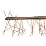 « J’aime les matériaux qui vivent, se patinent, prennent des taches ». Lampe avec pied en branche d’arbre plâtré, meuble vitrine avec étagères composés de chutes de placage recollées ensemble, transat XXL posé sur une structure de pierre volcanique de 320 millions d’années avec assise composée de sangles de grues recréées, les assemblages sculpturaux de Lionel Jadot, basés sur la philosophie du recyclage, sont plus que des montages inspirés de pièces hétéroclites. Ses œuvres racontent des histoires et sont souvent finalisées par des artisans comme des pièces de haute couture. Elles renferment des éléments rares, d’exception et anciens associés à des matériaux et métaux ordinaires. Et c’est justement ce qui fait leur richesse, leur particularité. Armoire à linge recouverte de roofing et d’or, tapisserie ancienne décorée d’emblèmes de moto, tronc d’arbre détourné en châssis de vraie moto, fauteuil sculptural réinventé à partir d’un siège de camion récupéré de son père et de quelques profils de chaise… la création semble s’exercer en toute liberté, mais c’est un leurre, elle parle de l’homme de ses passions, de ses obsessions et de ses racines.