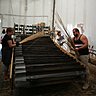 Aujourd’hui, Bruno Derrieu achète aux sagneurs ses roseaux. Et c’est ainsi que peut fonctionner l'unique machine vieille de 60 ans, qui suffit à fabriquer quelque 30 000 m² de paillassons chaque année, selon un principe assez simple ! "C'est comme une grosse machine à coudre" plaisante l'un des salariés de la TPE. Les paquets de roseaux sont en effet cousus entre eux au point de chaînette, avec un fil de nylon, dans différentes largeurs, pour donner les fameux paillassons, qui servent le plus souvent de brise-vue, mais sont aussi recherchés pour d'autres usages.