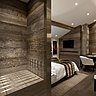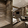 Changement complet de déco : cette chambre est entièrement réalisée dans un bois provenant de granges canadiennes démontées, et convoyées depuis le Canada par bateaux. Ainsi, le bois donne autant une atmosphère chaleureuse, qu’une ambiance de chalet moderne.