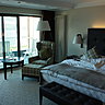Situé dans l’aile Est du bâtiment, le restaurant gastronomique joue la partition classique, tant sur la carte que dans la déco. Tons clairs pour les murs de la grande salle dont les larges baies offrent une vue direct sur le lac et les monts avoisinants. Un cadre parfait pour le dîner. Là encore, des plats simples, bien exécutés, des produits régionaux, comme le bœuf, servi en carpaccio, ou l’agneau dont la côte est cuisinée panée. Le Turbot « à la méditerranéenne » est cuit façon meunière, accompagné d’une purée et d’une ratatouille. Des desserts sages et gourmands pour conclure le repas par une note sucrée.