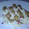 On a aimé en amuse bouche le blanc-manger de tourteau servi avec du yuzu ; les cuisses de grenouilles poêlées façon meunière, sur un lit de chou fleur blanc, « à la poudre de voyage », traduction : aux épices préparées par Olivier Roellinger (note de curry subtile !)) ; le homard bleu rafraîchi avec des pétales de tomates cerise. Deux grands plats pour suivre : le saumon d’Ecosse (mariné au sel) légèrement fumé, cuit au four en croûte d’épices douces ; et les noix de ris de veau sur le grill, servies avec des coco de Paimpol et des éclats d’olives noires. Deux superbes cuissons. De l’épicé et de l’aigre-doux, une des marques de fabrique de l’école Troigros. Et pour les accompagner, le sommelier Renaud Laurent (venu de La Table de Robuchon) recommande un Meursault Domaine Ballot-Millot 2006 racé au goût de chèvrefeuille, idéal comme accord.