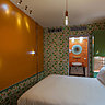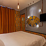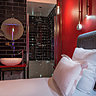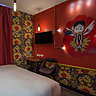 A mille lieues des hôtels impersonnels, l’hôtel Exquis est niché dans un des quartiers les plus tendance de Paris. Aux manettes de cet établissement, Elegancia Hotels et l’artiste Julie Gauthron. S’inspirant des célèbres Cadavres Exquis, cette dernière a fait appel à l’association LE M.U.R. pour choisir 8 artistes afin de réaliser une œuvre d’art unique par chambre. Leurs seules consignes, les couleurs et les papiers peints des chambres. Le résultat, un univers coloré et décalé où se mêlent ici et là des lapins rouges, des singes gourmands, un champ de fleurs au clair de lune, des vagues, des nénuphars… Dans cet écrin extravagant, fantaisiste, voire surréaliste, le mobilier a lui aussi son histoire, puisque chaque pièce a été chinée aux puces de Saint-Ouen.