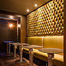 Afficher la galerieDans la chambre « Dahlia » rose, le mur est tapissé de velours capitonné, comme une loge de salle de spectacle type cabaret. L’ambiance rétro est ravivée par le jeu des reflets de lumières sur des matières réactives comme le plexi.