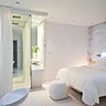 A Paris, dans le 11e arrondissement, le BLC propose 29 chambres revêtues d’un blanc minimaliste. Lumière, éclat, sobriété se lisent le long des six étages pour apporter une bulle de bien-être à ceux qui viendront profiter de son confort contemporain. Carole Picard, sa décoratrice, a tenu à proposer en 2009 un espace de quiétude obtenu par la plénitude de la monochromie, entre pureté polaire et lumière plus chaude. Si la capitale distribue son énergie électrique toute la journée, il reste un havre de paix à retrouver sur son parcours, sa chambre privée. Chacune de celles du BLC dispose, séparé par un rideau, d’un espace sanitaire simple au dessin fluide comme le fil de l’eau, de stores occultants aux fenêtres, enfin de rangements discrets, des tiroirs situés sous les lits.