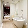 On doit la rénovation de ce bijou belge à l'architecte parisien Marc Humblet qui, pendant deux ans, s'est consacré à rendre l'endroit à la fois moderne, design et chaleureux. Le plancher de bois blond donne tout de suite le ton, tandis que les salles de bains apportent du cachet aux chambres avec leurs vitres sablées. La ligne de linge de maison Mia Zia y rajoute son grain de sel, sa touche de couleurs acidulées pour donner aux espaces leur lumière et cette impression de paix.