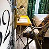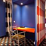 L’Afrique, on y rencontre les esclaves, les senteurs du cacao ! Un siège recouvert d’un velours zèbre, une vasque en pierre de lave orne la salle de bains, une pièce unique. Cette Afrique si riche et encore si inconnue, terre de notre passé, terre de notre devenir ! Son tissu qui évoque les indiennes d’Arles, bleu et blanc avec comme dessin le fruit de l’indigo, histoire de rappeler l’origine des colorants bleus issus de cette plante.