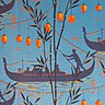 L’Asie, mais une Asie où le monde occidental a laissé sa trace, avec ce papier-peint et ses gondoles couplées à des lanternes chinoises, des tissus qui évoquent la Mongolie, les grandes étendues des steppes, des dessins chamarrés !