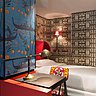 Revenons à l’hôtel qui a vu passer des voyageurs depuis plusieurs générations. Que de calèches, de voitures ont déposés des voyageurs issus du monde entier dans ce petit hôtel de 25 chambres situé dans le cœur de la mode et du luxe, à quelques mètres de la place Vendôme et du jardin des Tuileries ! Un quartier où il est bon de flâner dès sa sortie de l’hôtel… Mais restons dans cette boîte du bonheur imaginée par Christan Lacroix. Découvrons ces continents étage par étage.
