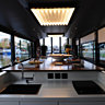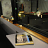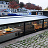 Ici, subtilité rime avec générosité. Les 40 mètres carrés, si petits semblent-ils, s’ouvrent, presque entièrement sur la rivière traversant la ville, grâce à de larges baies vitrées coulissantes. Les jours de pluie, cet ancien bateau-mouche des années 30 se transforme en nid douillet où il fait bon se prélasser dans les fauteuils le Corbusier tout en écoutant de la musique. Voir évoluer les cygnes, être témoin des mouvements urbains sans en subir le bruit, font partie du véritable luxe de cet espace magique. En bon capitaine de navire, Jacques n’hésite pas à faire partager ses coups de cœur, en exposant et proposant des pièces de créateurs triées sur le volet.