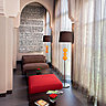 Pour ce projet, un an d’études et 18 mois de travaux ont été nécessaires. Les chambres ont été revisitées. Elles sont de petites superficies (environ 30 m2 pour les standards, et 50 m2 pour les suites), mais elles offrent un confort maximal et une vue sur le jardin, lui-même redéfini. Leur décoration est contemporaine. Les matériaux choisis sont le marbre, le bois de cèdre, le tadelakt, le taffetas et le métal frappé. L’ambiance est chaleureuse avec des couleurs café, taupe, sable, tabac, réglisse, aubergine et prune.