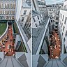 Tout proche du Haut-Marais, l’hôtel déploie sur 3500 m² et 9 étages, ses 101 chambres, 19 suites et son penthouse, accompagnés d’un restaurant, d’un bar, d’un spa, de 3 salles de réunion et 3 niveaux de parking. Une partie de ses fenêtres métalliques pesant de l’or et un poids de 150 kg ont été vendues aux enchères au profit de deux ONG œuvrant en Afrique : l’AMREF Flying Doctors et la Fondation Chirac. Et pendant toute la durée des travaux, performances, vernissages et œuvres éphémères d’artistes ont émaillé quelques soirées mémorables, dans ce quartier de métissages. Dans cet esprit, l’hôtel Renaissance Paris République invite les artistes du mouvement street art à s’exposer sur les murs de l’hôtel, du lobby aux chambres, sur le rooftop comme au parking. Le street-artiste J3 et ses œuvres tracées à la craie se sont déjà illustrés dans tous les espaces bruts, du sous-sol au toit de l’hôtel. Outre son ouverture sur les artistes d’aujourd’hui, le Renaissance Paris République défend l’artisanat français. Il a ainsi choisi pour sa table, la ligne de couteaux de Roland Lannier jouant sur l’élégance de la céramique et du bois. Et la trancheuse du vrai bon jambon de Bayonne, signée du fabricant savoyard Roussey, trône sur le comptoir !
