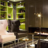 Dès que la porte s’ouvre, le charme opère, spécifiquement si vous aimez les atmosphères XVIIIème siècle. Le boudoir n’est pas très loin, sans ses possibles côtés mièvre, coquin ou Pigalle la nuit. Le XVIIIème est là par petites touches (fauteuils capitonnés, lustres, miroirs en bois doré…..), mais il est modernisé, rendu contemporain par quelques couleurs vives (vert cru des intérieurs de boiseries, rose flashy de certaines banquettes, moquettes à damiers bicolores…).