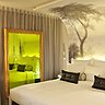 Les chambres abolissant la frontière entre extérieur et intérieur jouent tout autant avec l’environnement. Chaque chambre est unique, le designer a voulu « laisser une liberté aux gens pour appréhender l’espace ». Palissandre, évocations solaire et végétale s’allient harmonieusement.
