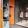 Le projet a été suivi par les architectes et décorateurs Valérie Garcia et Kristian Gavoille. Dans cette ancienne usine en briques rouges, on est accueilli par les cloches des temples bouddhistes qui illuminent le sol et les trois gigantesques moulins à prière tibétains qui affichent, au fil des jours, les évènements à venir. A droite, c’est l’épicerie, la réception puis nous pouvons admirer les portraits des ouvriers qui ont rénové le bâtiment. Ici on ne s’ennuie pas, les clients et voyageurs peuvent louer des Ipad Pro, visionner des films dans un home cinéma, jouer d’un instrument ou écouter de la musique. Et les pop up stores accueillent tous les 15 jours de nouveaux créateurs. Car cet espace soutient les jeunes entrepreneurs créatifs.