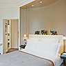 Un sas et un ascenseur vous conduisent à un espace ou le blanc est omniprésent, très contemporain, avec un parquet clair, un coin salon, une salle à manger, une salle de bains, le tout entièrement de blanc vêtu ! Et le top du top : une terrasse avec vue sur les toits de Paris, la tour Eiffel, le Dôme des Invalides, et la Basilique du Sacré Cœur ! Mais plus près de vous, les toits du Palais Royal en zinc, et en été sa verdure qui les sublime ! Plus qu’un hôtel, un rendez-vous entre amis, entre amoureux, entre professionnels, le temps, par exemple, de la Fashion Week.