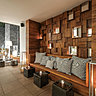 Griffé de motifs ethniques, africains ou indiens, le lobby de l’hôtel s’inspire du métissage du quartier République. L’espace est habillé avec les fauteuils graphiques d’Hamilton Conte, les œuvres originales des pointures de la céramique française, Claudine Monchaussé et Gustave Tiffoche. Le mobilier des designers français des années 50 est à l’honneur, avec les fauteuils de Geneviève Dangles, Christian Defrance et Joseph-André Motte.