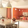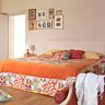 Trois chambres sont aménagées au premier étage. Une très grande chambre double avec sa vue imprenable sur les anciens volcans avec une décoration digne d’un inventaire à la Prévert avec des tables gigognes design, un meuble de rangement de la SNCF, des tables de nuit tronc d’arbre… Une chambre simple pour enfant, aménagée tout en simplicité avec une petite commode, quelques jouets, des déguisements de chevaliers et un bronze d’Hercule sur son char… Une seconde chambre double au plafond orange profond et à la décoration à la fois actuelle et vintage, avec une paire de chaises de bistrot ’50 et des tam-tams ’70 en guise de chevets.