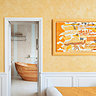 Ocre mauve, ocre rouille, ocre jaune, ocre rouge et bleue, chaque chambre porte une couleur emblématique avec des murs mis en teinte avec des pigments naturels du Roussillon. L’ensemble est une ode et un hommage à un maître de la couleur, Henri Matisse, artiste très apprécié de la propriétaire des lieux. Les suites de 41 à 48 m² sont dotées d’un salon privé, d’un balcon, d’une terrasse ou d’un bow-window. Les salles de bains sont habillées de marbre et de pâte de verre aux tons clairs. Elles sont dotées d’une baignoire en bois de mélèze massif et d’un hammam privé. La chambre bleue est équipée d’une douche à l’italienne. Partout on a choisi des matériaux nobles : bois, marbre, chaux, faïence, textiles d’ameublement haut de gamme dessinent un écrin élégant et intemporel, discret et raffiné. Et on a aussi favorisé le savoir-faire « made in France », avec une literie fabriquée dans l’Aveyron