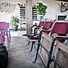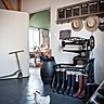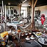 Au rez-de-chaussée de la longère rénovée, un espace de vie de 90 m² aux murs bruts et aux poutres apparentes. L'ambiance fleure bon l'authenticité, mais aussi l'originalité avec une collection d'objets vintage, insolites ou mythiques tels qu'un trieur de poste, des sièges de théâtre, une vieille cuisinière, des vinyles ou encore une machine à coudre Singer.
