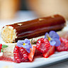 Esthétisme et originalité caractérisent les desserts qui font la partie belle aux fruits de saison (la fraise des bois en mousse, sorbet glissés dans un cylindre meringué et relevé d’un trait de vinaigre balsamique ; le citron en soufflé, granité et sorbet) (18 €).