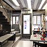 On peine donc à voir notre Café Bohème dans l’étroite petite rue des Canettes, car la devanture ne paye pas de mine ; mais à l’intérieur on est séduit par le charme du lieu. Les poutres lasurées, les pierres aux murs, les banquettes en cuir du rez-de-chaussée contrastent avec l’ambiance nettement plus contemporaine du 1er étage agrandi par le miroir principal.