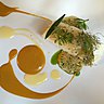 Passé le temps de la mise en place du nouveau restaurant, du rodage, et de la pression liée à l’ouverture, le maître des lieux paraît aujourd’hui très à l’aise dans sa maison. Je garde en effet de mon premier repas chez David Toutain - au début de l’été 2014 -, le souvenir de plats en retenue, de quelques classiques avisés seulement là pour rassurer, à la fois le chef et ses clients, et d’assiettes bien timides quand on connaît le potentiel du cuisinier. Les mois écoulés lui ont laissé le temps de prendre ses marques et enfin d’exprimer toute sa créativité.