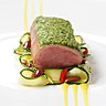 L’entrée : de belles langoustines achetées dans une poissonnerie de la rue Lecourbe que Virginie Basselot roule dans le kadaïf, des cheveux d’ange croustillants passés quelques secondes à la friteuse (la gelée de yuzu et de menthe apportent fraicheur et acidulé au plat) 32 €. Assiette beige saumonée et rouge vif pour le foie gras landais entouré de grenades en gelée et de compotée de pommes rouges (29 €).