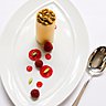 Travaillé comme un poisson meunière, le turbot s’allonge sur une purée de tomates mi-confites qui sont relevées par une petite touche fumée, les tomates étant peu goûteuses en hiver. Ni rose à l’arête ni surcuit, le poisson est parfaitement saisi (48 €). Il peut facilement soutenir la comparaison avec les viandes, le filet de chevreuil ou le cochon de lait présenté de plusieurs manières (côtes, poitrine, saucisse avec une sauce à la sauge et de la laitue braisée 40 €).