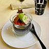 On en vient au dessert. En grand amateur de cette note finale du repas, je suis très déçu. Je commande une coupe de fraises avec son sorbet aux herbes (menthe, persil plat et coriandre). Les fraises seules sont sucrées à point, et le sorbet seul convient aux amateurs d’acidité. Les deux ensembles, on ne sent plus les fraises ! La saveur trop prononcée du mélange d’herbes fausse tout le goût. J’ai pourtant cru commander une coupe de fraises.