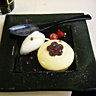 Arrive le plat principal : ris de veau et carottes, aromatisées à la blette. Parfait. La cuisson du veau rend la viande presque fondante sur la langue. Les carottes sont juste assez cuites pour rester croquantes et fraîches. La blette accompagne le tout d’un petit goût amer. L’ensemble est parsemé de petits carrés de sauge qui ravivent encore le goût. Une touche fraîche et forte qui relève l'ensemble, mais qui dérange au bout de quelques coups de fourchette. Ajoutez à cela un fond de veau pour épaissir la viande, presque flottante mais savoureuse. Encore une fois, aucun rapport avec l’amuse-bouche si puissant, mais ce n’est qu’un détail.