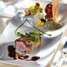 Pour continuer sur la marée, belle pioche et pêche avec la sole (55 €) doucement cuite et fourrée de cèpes. Copeaux de truffes et effeuillée de coriandre apportaient la touche aromatique. Le turbot breton (65 €) était accompagné de délicieux petits artichauts poivrade à la crème de truffe ainsi que de coquillages qui donnaient une petite note iodée.