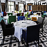 Entre boiseries anciennes, lustres d'origine en fer forgé, abat-jour en tissu Lelièvre, sièges de Pierre Paulin et une frise peinte de taureaux et d'Arlésiennes en ombres chinoises… Tout le ton de la décoration de Christian Lacroix est donné !