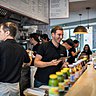 Un bar à crêpes où tout un chacun a la liberté de créer sa crêpe du moment, avec les ingrédients de son choix. La base : une farine de sarrasin, naturellement sans gluten (IGP Bretagne de la Minoterie Bertho, Morhiban) ou une farine de froment (Bio des Moulins de Brasseuil en Ile de France).
