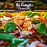Retour sur les pizzas, l’esprit du lieu. Sachez avant toute chose que les ingrédients proviennent des meilleurs importateurs italiens et restent les mêmes que du temps du restaurant gastronomique : anchois de Sicile, câpres de Lipari, charcuterie italienne, parmesan 24 mois…et selon les arrivages des cèpes, truffes blanches ou noires…Romain fait bien entendu lui-même son pesto et confectionne ses pizzas en fonction de la saisonnalité des produits, ce qui engendre automatiquement une saisonnalité des pizzas. C’est par exemple bientôt la saison des châtaignes et du potiron. Pour donner du croquant et de la fraîcheur à ses pizzas, Romain dispose de belles quantités de crudités sur le dessus, une fois cuites.