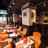 A côté de ces plats très marqués USA, la décoration est elle aussi très marquée à l’américaine. Omniprésence du rouge et du noir, murs en brique, écrans de télévision, bars en hauteur pour un ultime verre. En effet, le Play Off est connu pour être un after work, une adresse conviviale où les jeunes viennent boire un cocktail, grignoter des morceaux de tortillas, quelques tranches de chorizo ou de cochon pâte noire espagnole. A 10 €, Bloody Mary, Caïpirina, Mojito, Pimm’s sont allègrement descendus sur fond de musique distillée par un DJ. Cette atmosphère bar s’amplifie aux moments des grands évènements sportifs, du tennis au foot ; car de grands écrans de télévision sont disposés partout dans les pièces. Aux postes donc pour la future coupe d’Europe !!