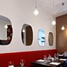 L’ambiance du lieu est un peu celle d’un loft contemporain et minimaliste, car il est découpé en trois espaces : une salle classique et carrée au devant, un couloir au papier peint peps’, une mezzanine lumineuse et privatisable pour une quinzaine de couverts. La simplicité du décor va de pair avec la convivialité et la gentillesse du chef et du personnel : pas de discours convenus, de clichés stéréotypés, mais de l’efficacité autour d’une assiette simple dans un esprit copiant un peu le style « Robuchon » : juste un produit bien cuit, deux ou trois saveurs pas plus sans fioriture supplémentaire.