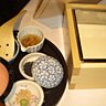 Chaque plat est dressé avec délicatesse dans une vaisselle traditionnelle issue de l’artisanat japonais. Et comme les mets, elle évolue au fil des saisons : motifs de cerisiers pour le printemps, transparence en été, couleur brune pour l’automne et bois l’hiver.