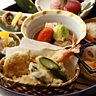 Un assortiment d’entrées froides et chaudes : étonnante fleur de lotus marinée, soupe miso, tofu frit, purée de tofu aux petits légumes, sushi, bulots, maquereau… suivi d’une soupe de saison