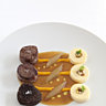 Les tables voisines semblaient ravies de leur tournedos de lotte (40 €) accompagné d’une purée pommes de terre-artichauts-cébettes et des langoustines en lasagnes aux légumes croquants (38 €). Mais si vous êtes amateur de gibier, foncez sur la biche, c’est une pure merveille de « tendreté » et de variation sur une même viande (38 €). Trois tronçons de noisette ( la meilleure partie) sont présentés et travaillés différemment, le premier poêlé au naturel, le second bardé de lard fumé, le dernier enrobé de morceaux de truffes. Voilà une très belle proposition où la différence de saveurs est présente autour d’une même matière première. Une pointe de doux-sucré est apportée par la douceur de céleris confits.