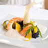 Le carpaccio de Saint-Jacques (28 €) et le foie gras mi-cuit (22€) ne sont pas très originaux. Optez plutôt pour les gambas juste saisies à la plancha (23€), elles sont accompagnées de délicieux raviolis remplis de crabe émietté, d’émincés de poireaux et de citron confit. Belle réussite pour ce plat grâce à la pointe de citron qui vient rafraîchir et aciduler le crabe et les poireaux.