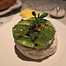 Chef talentueuse et prometteuse, Stéphanie Le Quellec revisite avec bonheur les frivolités chères à Escoffier. La chef du Prince de Galles sert pour amuser le palais en tout début de repas, d’élégants petit stickers – de très fins tacos – qui surprennent par leur légèreté, leur précision et leur finesse. Une intéressante prise de contact avec la cuisine qui accompagne agréablement une coupe de champagne Laurent Perrier proposé à l’apéritif.