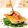 Respectant un principe bien connu, le chef ne met pas avant plus de 3 saveurs par plat ; mais l’assiette est souvent inédite et graphique à l’image du nem de canard confit (une longue allumette farcie de foie gras) qui accompagne un velouté d’artichauts et une quenelle de foie gras (19 €). Les tempuras de cuisses de grenouilles ont une pâte bien légère et croustillante et pour relever le batracien, non pas la banalité de l’ail, mais la force piquante de tandoori adouci par la verdeur d’un jus de cresson (25 €). Les femmes apprécieront la légèreté des coques d’étrilles en gelée dans lesquelles le crustacé décortiqué est travaillé en rémoulade à la ciboulette (23 €).