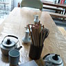 ... dont la carte illustre au mieux la cuisine ménagère simple et savoureuse, celle du Sud, de l’île de Kyushu, je ne résiste pas aux boulettes de crevette et seiche et au maquereau grillé, a cependant parfois tendance à m’empêcher de digérer ! Les règles de prise d’assaut des tables changent tous les jours. Théoriquement, il faut faire la queue à la caisse, passer commande, la payer et alors, le ticket donne droit à poser ses fesses sur un des bancs des 3 longues tables d’hôtes. Mais voilà, parfois, il suffit de se la jouer parisienne et s’asseoir. Miraculeusement, une serveuse prend la commande sans ciller. D’autres fois, on vous place et ensuite on se décide pour des makis légumes ou du ton mariné au gingembre. Bref, il faut se préparer psychologiquement, savoir à quelle sauce on va être mangé, avoir du temps ou bien être japonais pour accepter de jongler avec les baguettes et zen.
