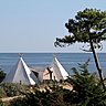 Depuis quelques années, une nouvelle vague déferle sur l’univers du camping, où se développe un concept inédit dans les plus beaux sites d’Europe. Imaginé par le créateur de la Fondation Cartier, Alain Dominique Perrin, le Camping du Midi renouvèle l’image traditionnelle du camping, en faisant appelle à la modernité pour apporter un véritable confort grand luxe. De toiles et de bois, la cabane n’est plus une construction branlante, mais une vraie petite maison de vacances de plein air, qui s’intègre avec harmonie dans son environnement. Du nom de lodges, ces logements reprennent la forme de tipi, où l’insolite invite à s’oublier pour des vacances d’exception. Ainsi, l’espace du « Domaine des Moulins » de Noirmoutier s’étend sur 5 hectares sur le littoral de l’île vendéene, domaine préservé et labellisé Charte Qualité ONF (Office National des Forêts). Loin de dénaturer les lieux, le campement se fait dans le respect de l’environnement, mettant en valeur un patrimoine régional.