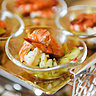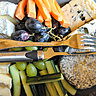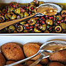 Nous goûtons les entrées… Le carpaccio de saumon, la tartine de tapenade avec le bol de potage sont délectables, la soupe de lentilles bien chaude est une merveille. La coupelle de gambas marinées acidulées à souhait, l’houmous suave et la boulette de viande vous mettent en appétit.