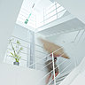 Conçue comme un escalier dont la cage est délimitée par les murs des immeubles mitoyens, la maison est structurée par le noyau qui contient les pièces d’eau, les emmarchements et paliers qui forment des espaces de vie différenciés (home cinéma, entrée cuisine séjour, bureau, dressing chambre, terrasse). La façade sud, entièrement vitrée et protégée par des persiennes, laisse entrevoir la complexité volumétrique et la continuité des espaces intérieurs.