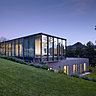 Le créateur de cette maison est l’architecte allemand Werner Sobek à la renommée internationale. Spécialiste des structures ultralégères de grandes dimensions, ses réalisations souvent expérimentales accordent une grande importance à la transparence, à la lumière et au verre, son matériau de prédilection. Sa philosophie : « notre environnement construit ne doit pas être seulement durable, mais aussi d’une beauté à couper le souffle ». Et il s’est rendu célèbre grâce à la House R-128, construite à Stuttgart. C’est sa première réalisation à répondre à son principe du Triple zéro : zéro énergie fossile, zéro émission, zéro déchet de démontage ou de transformation. Construction modulaire, en verre et acier, réalisée en dix semaines, elle utilise des techniques de vitrage ultramoderne pour créer un volume entièrement transparent et offrant un panorama à 360 ° sur son environnement ; on retrouve cette dernière caractéristique dans le volume supérieur de cette construction nichée contre la roche, au cœur des éléments et d’une nature admirablement préservée.